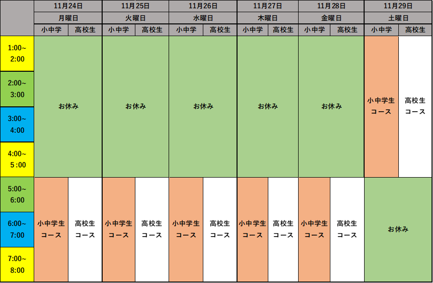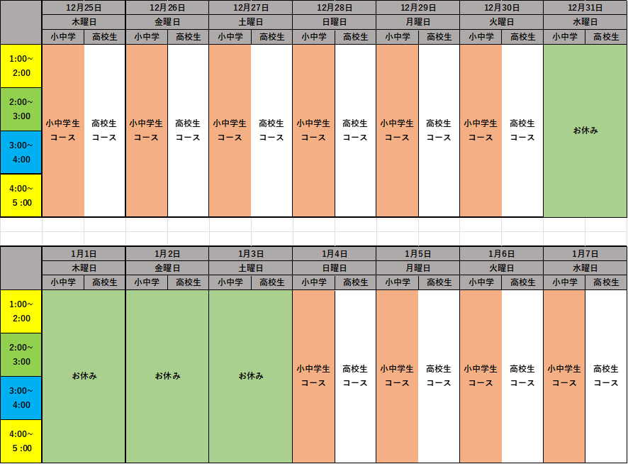 ただ、長期休みということを考えて、いつもよりは時間帯を増やし、