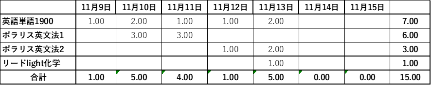 物理だけに集中させているので、勉強時間が伸びていましたが、今週はお休みでした。