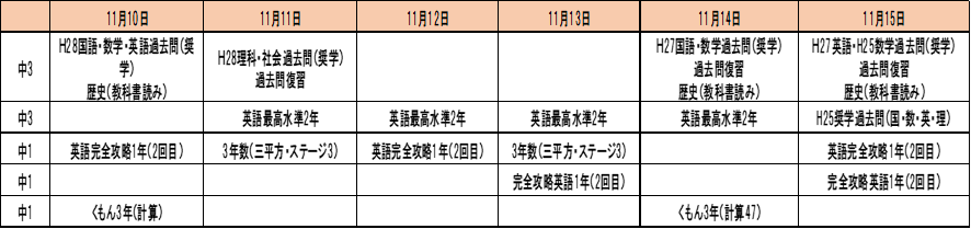 (例えば、年明けテストのための総復習など)です。