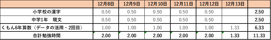 ワカスクに来ていない日は、2時間勉強をしているようです。