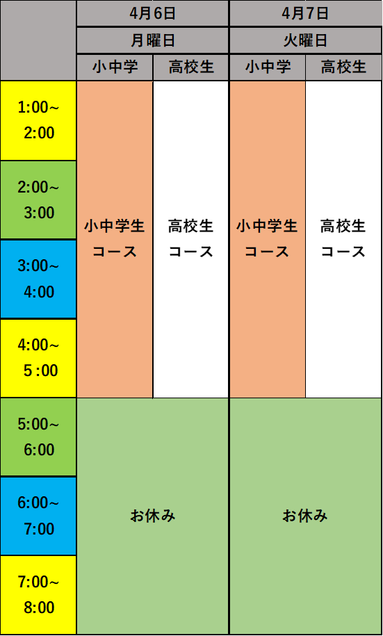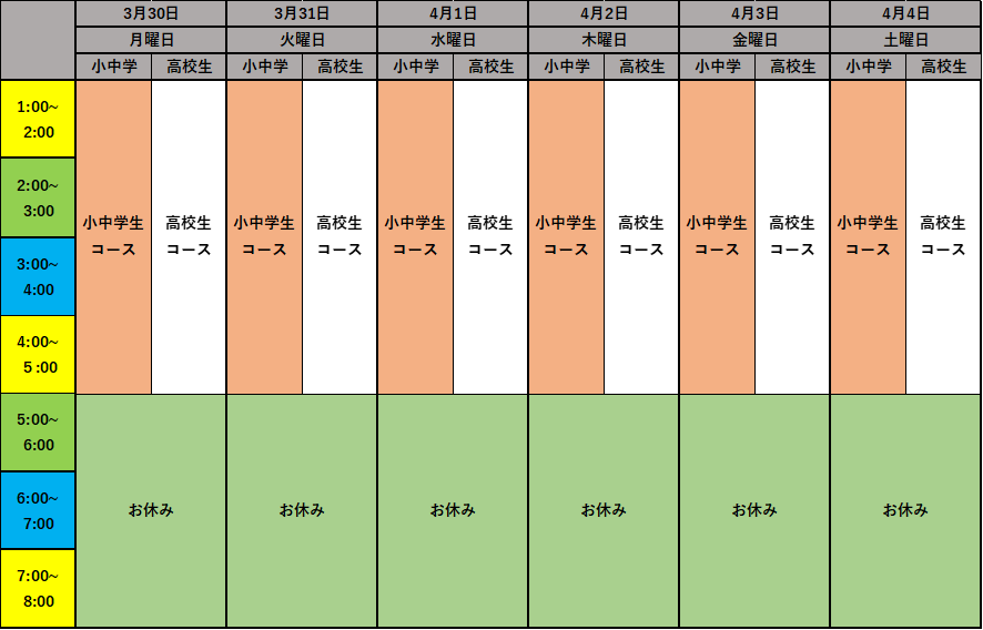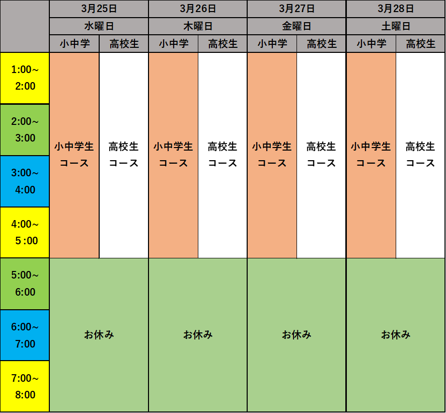 春休みのスケジュール